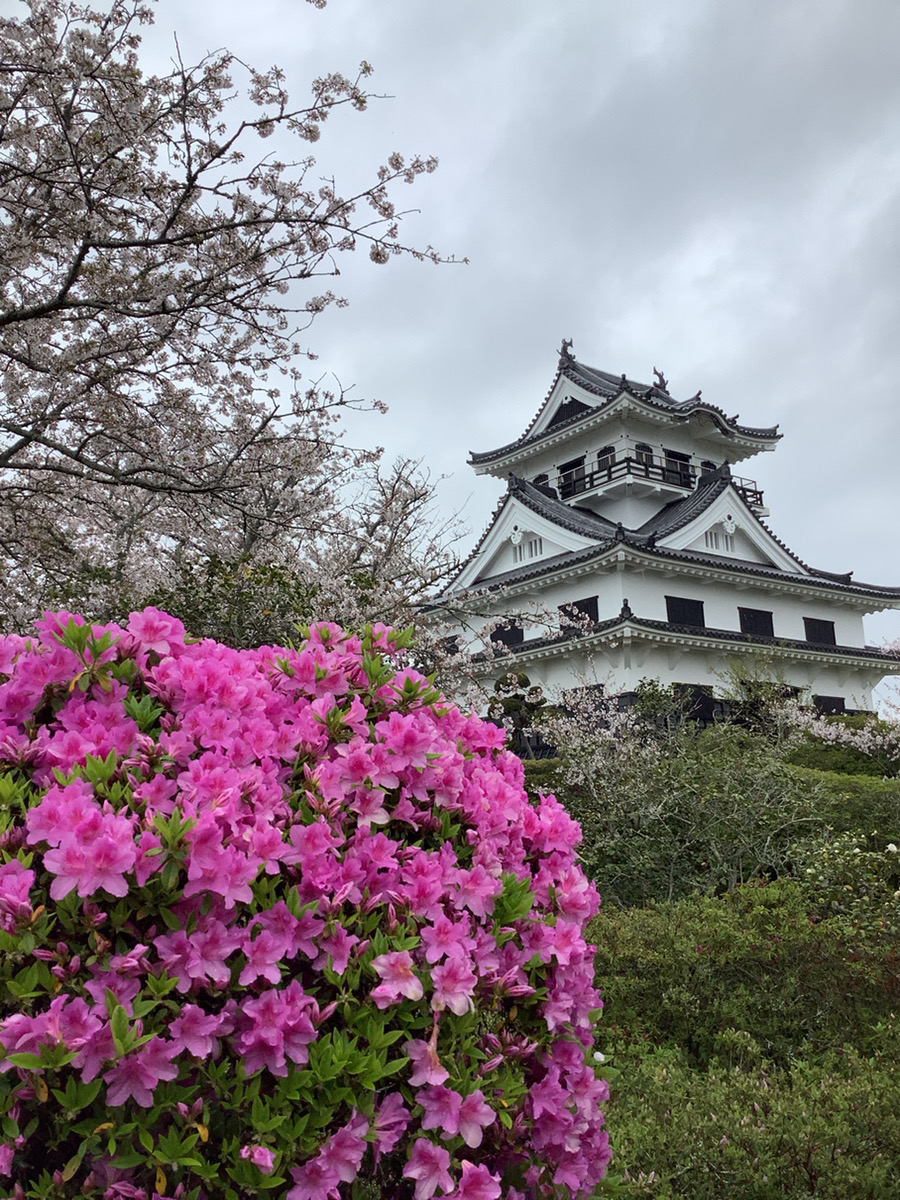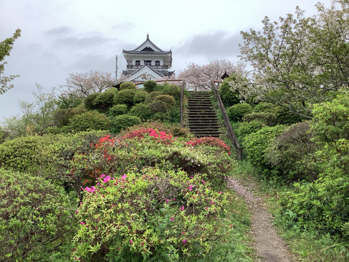 館山城周辺では、4月いっぱいまでツツジが色鮮やかに咲き、城周辺の斜面がピンク色に染まります。