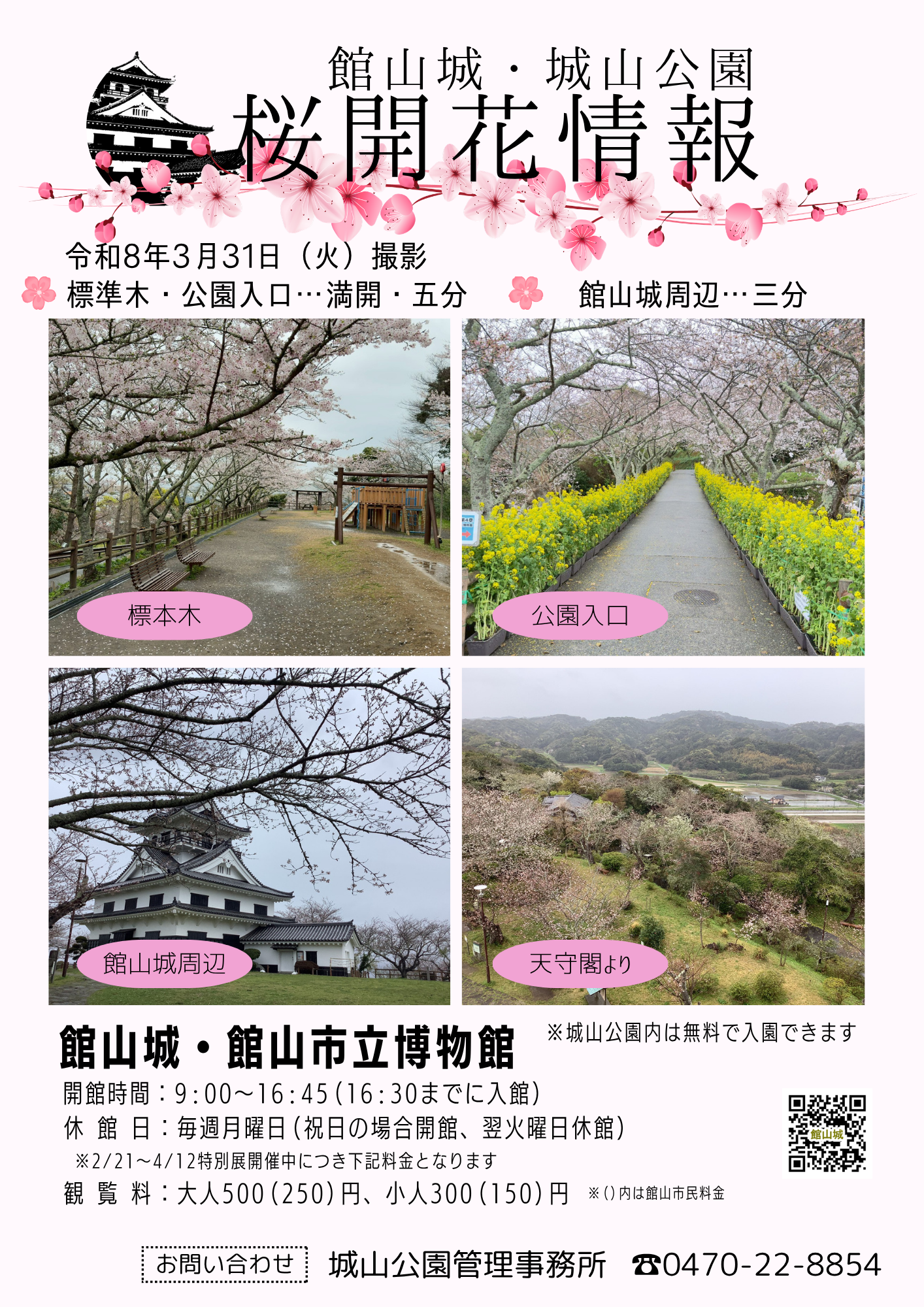 館山城周辺も三分咲きです。